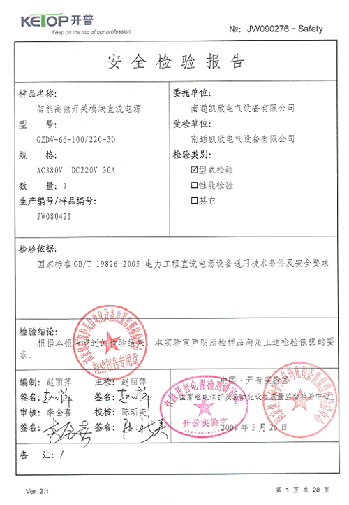直流屏檢測報告