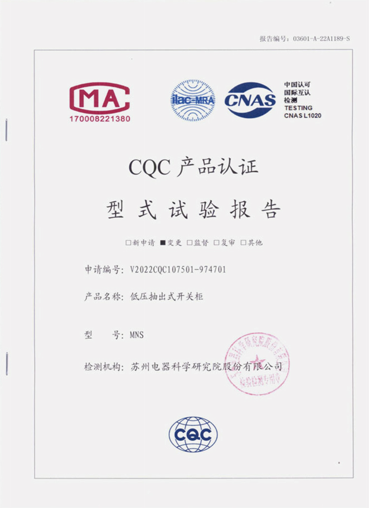 MNS低壓抽出式開關柜CQC認證實驗報告