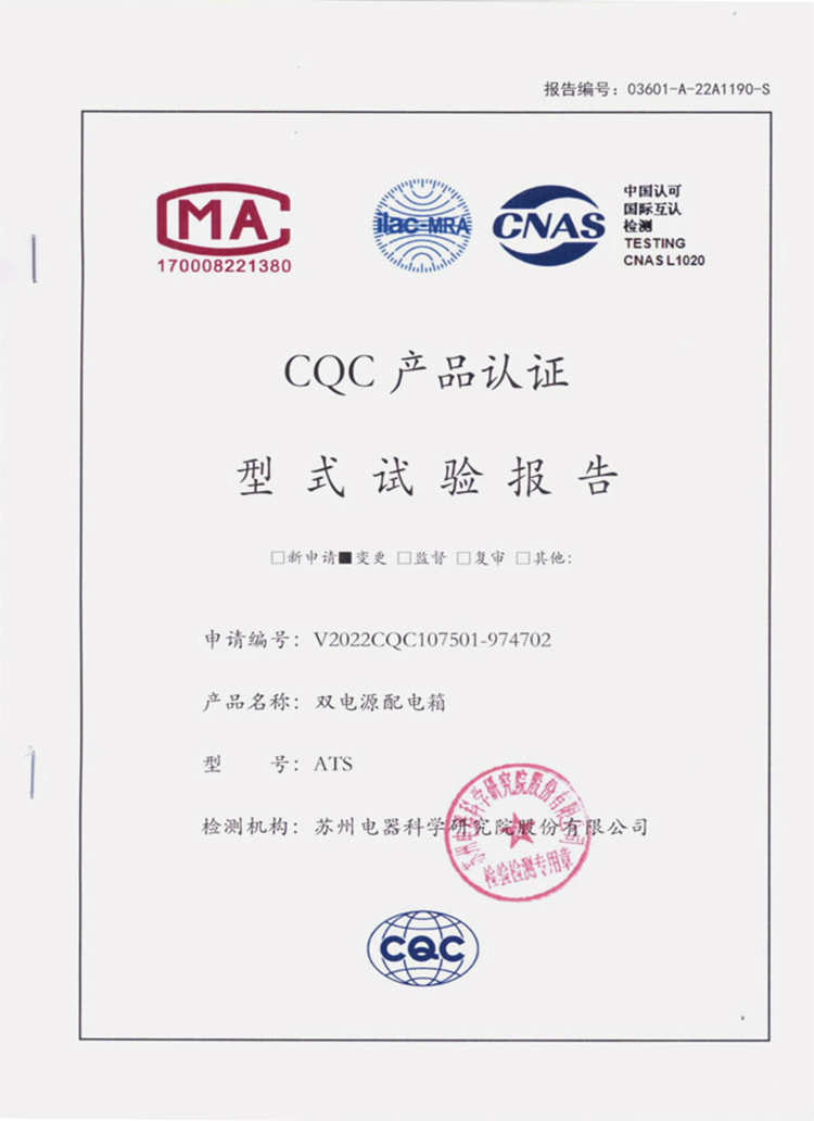 ATS雙電源配電箱CQC產(chǎn)品認(rèn)證
